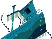 | Shipwreck | One shipwreck always appears on one of the dirt islands that border the ocean and deeeep. Tier 1 to tier 9 animals can hide here. Produces bubbles that can be eaten. Distinguishable from the shipwreck above by comparing the shape of the windows. |